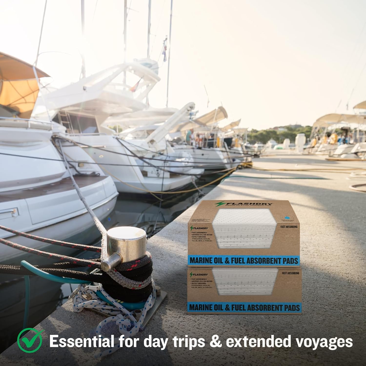 - High Absorbency: FlashDry Marine Pads quickly soak up hydrocarbons like oil, gasoline, and diesel while repelling water. Ideal for fast and efficient spill containment in marine environments, ensuring cleaner oceans and waterways.