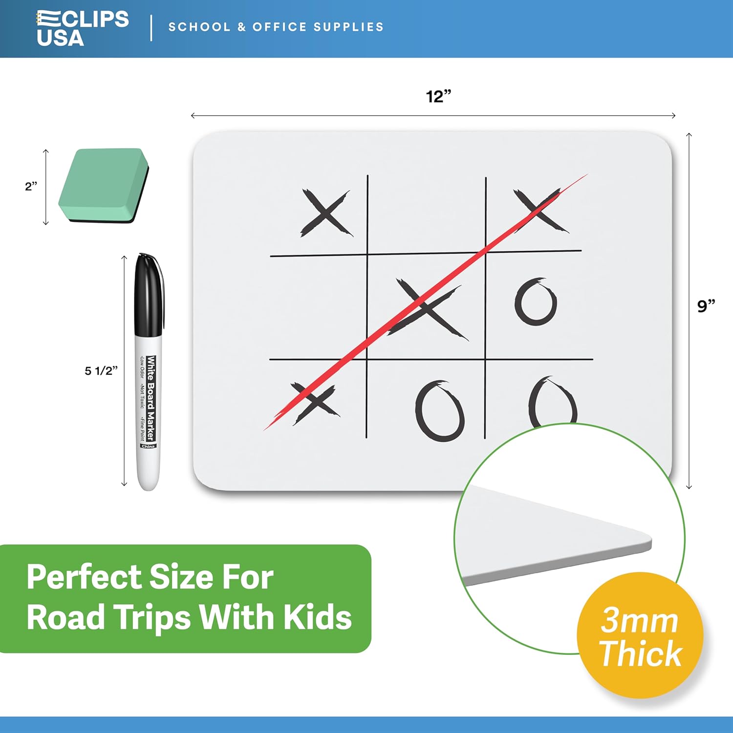 - 12 DRY ERASE MARKERS & 12 ERASERS INCLUDED - No need to shop twice, our boards come with 12 high quality smudge free dry erase markers and 12 dry erase board erasers.