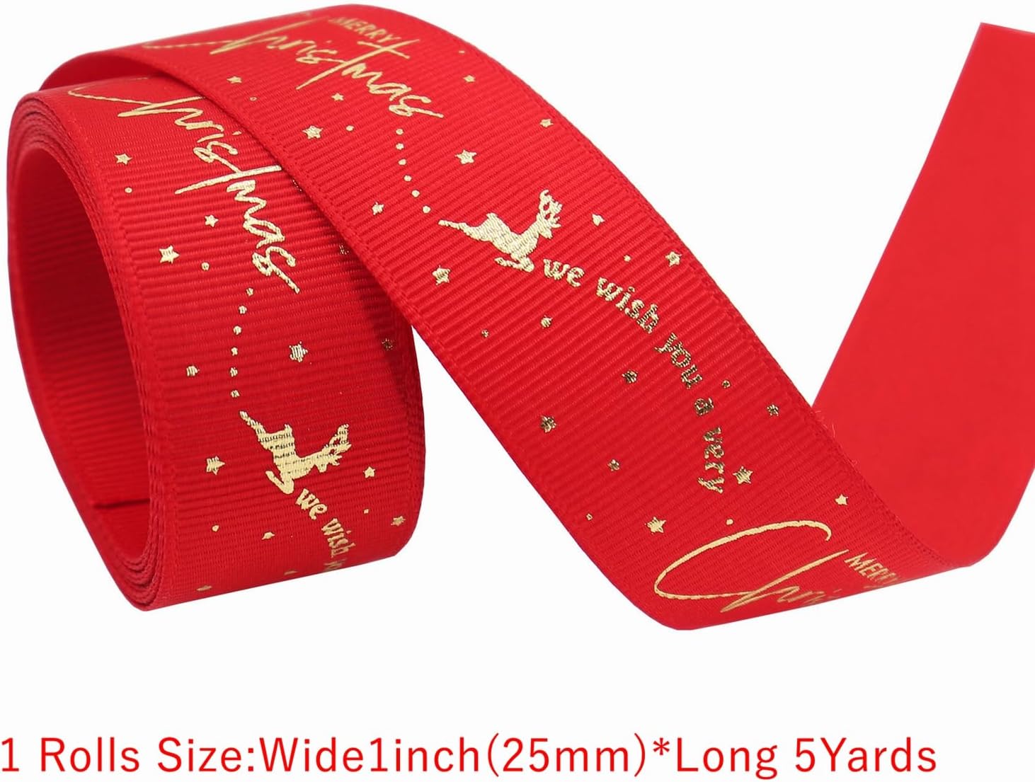 - Christmas Ribbon 3 Size:(3/8 Inch)in wide by 10 yards in length,(5/8Inch)in wide by 5 yards in length,(1 Inch)in wide by 5 yards in length. Each size 2 Rolls wrapping, enough ribbons to meet your holiday gift-wrapping and party-decorating needs