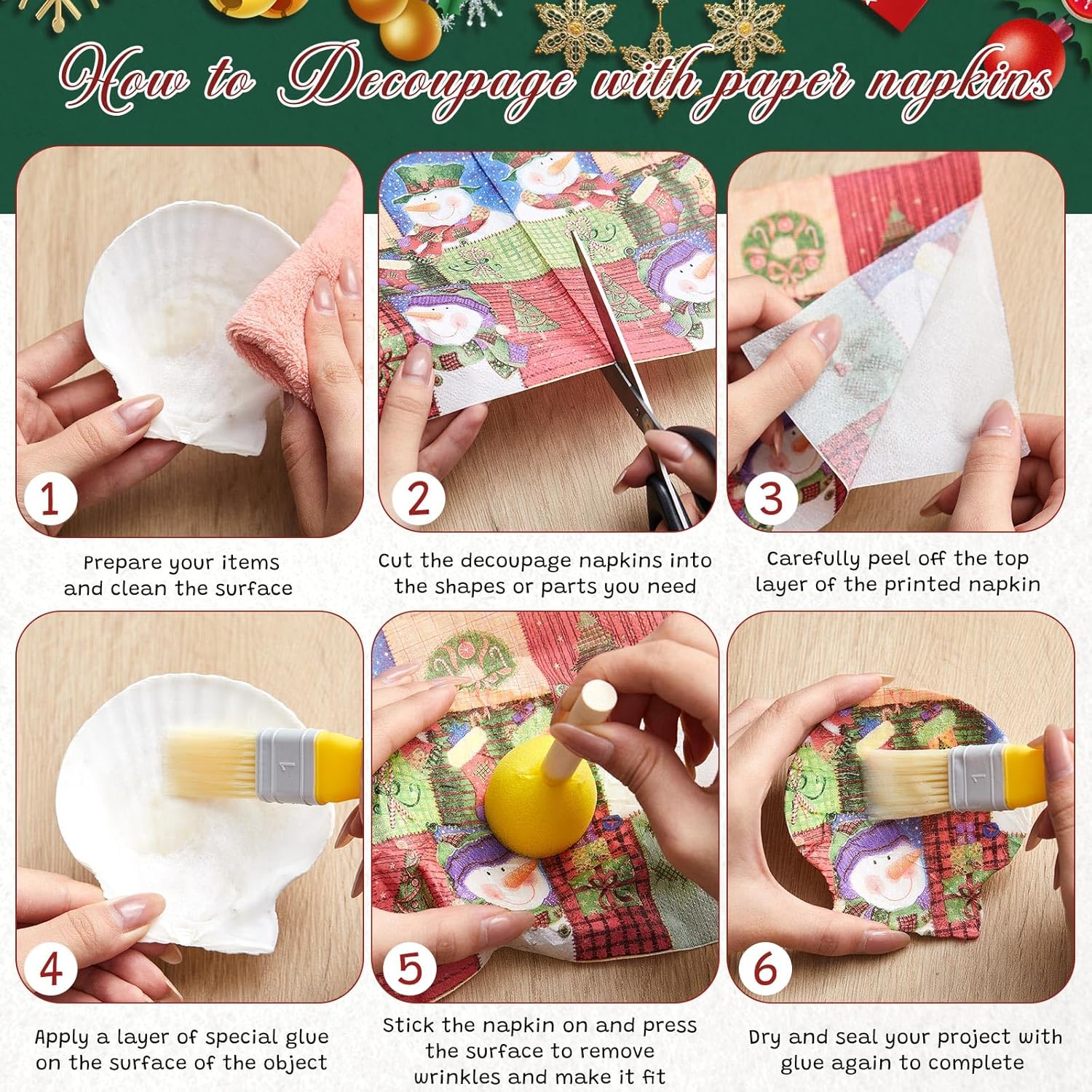 - Convenient Size: The Christmas decoupage napkins panels measure 33 cm, or approximately 13 inches, ensuring effortless application. Furthermore, they fold to a length of 6.5 inches, providing a simple and satisfying experience