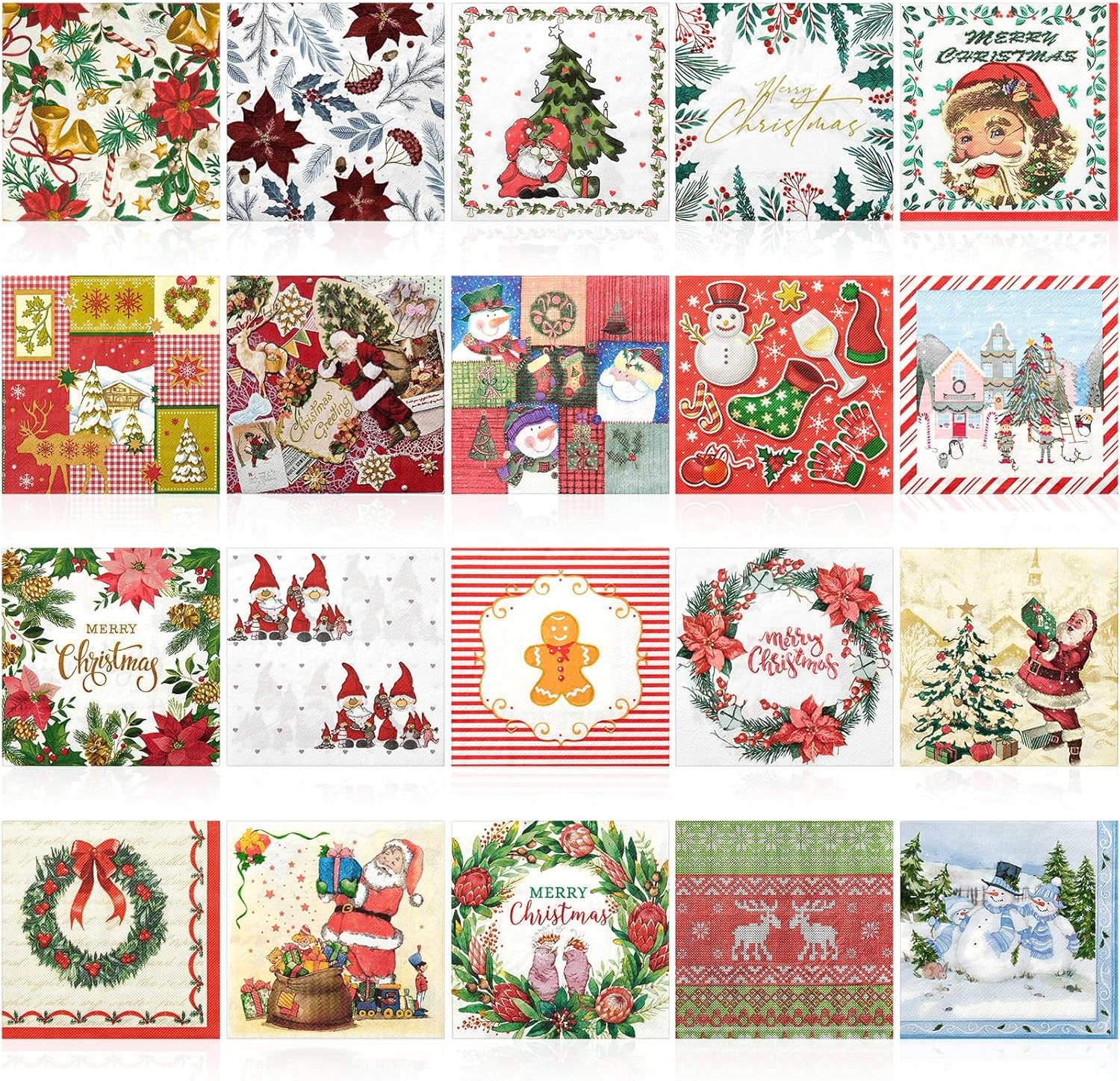 Crtiin 20 Pack Assorted Christmas decoupage napkins Santa Snowman Tree Napkins Decorative Beautiful for Birthday Xmas Winter Party Supplies, 20 Styles Each 6.5 Inches