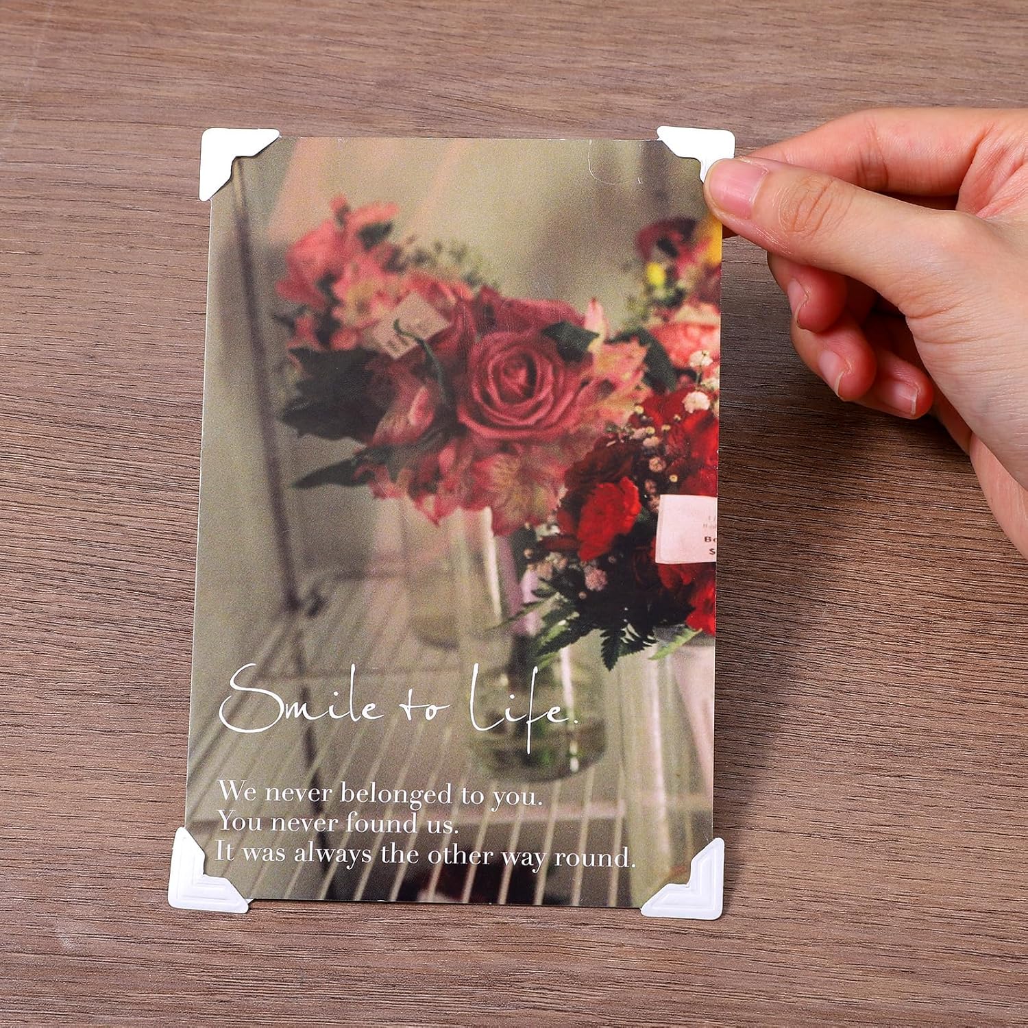 - 【Widely Used】 The photo corners for scrapbooking are used for fixing photos to photo albums and picture frames, also applicable to DIY scrapbooks, handmade albums, photo walls, greeting cards, etc. The white design of photo mounting corners is simple and elegant