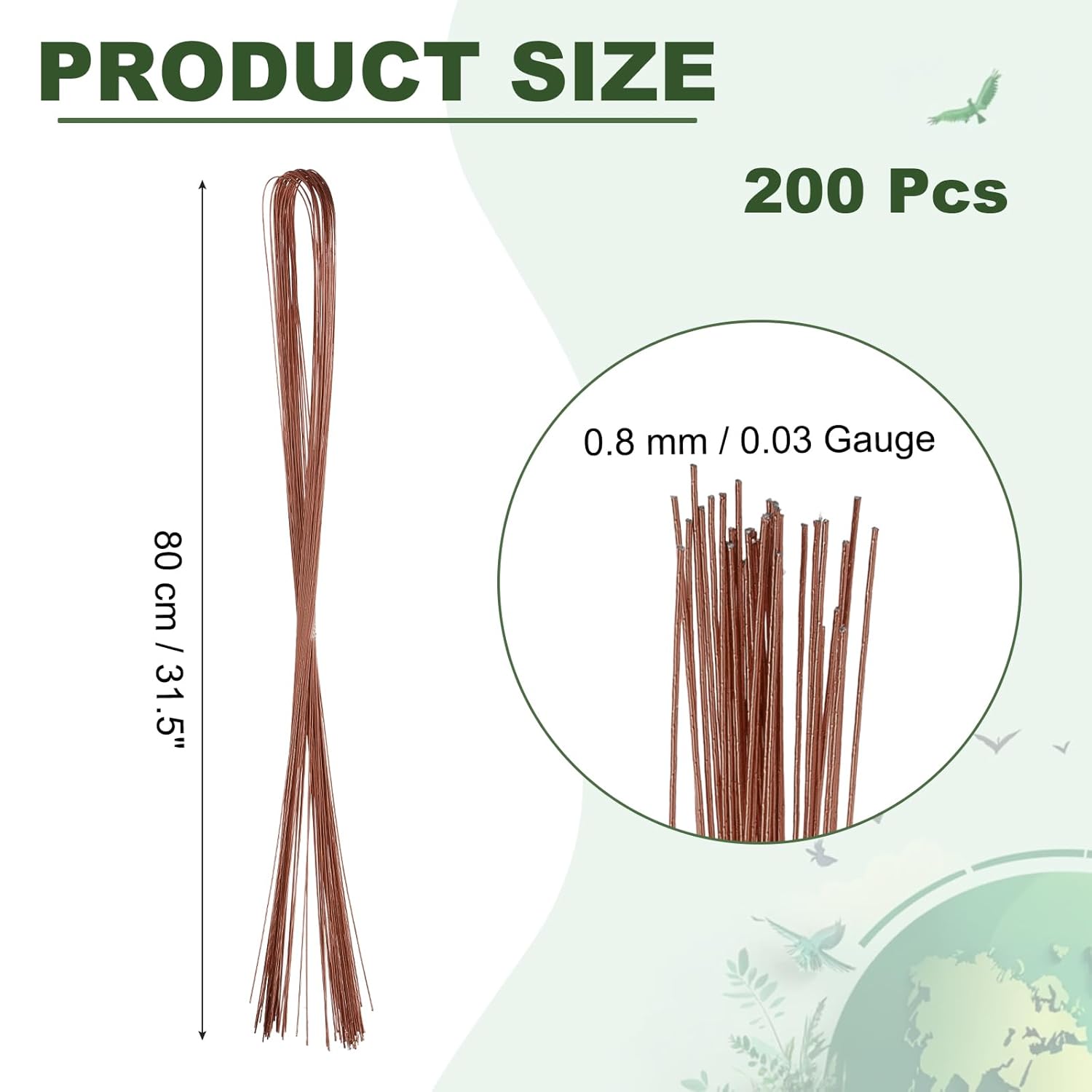 - Color: Coffee; Material: Iron; Gauge: 22; Length: 80 cm / 31.5 inch; Diameter: 0.8 mm / 0.03 inch; Packing List: 5 Pack x Floral Flower Stem Wire (40 pieces per pack)