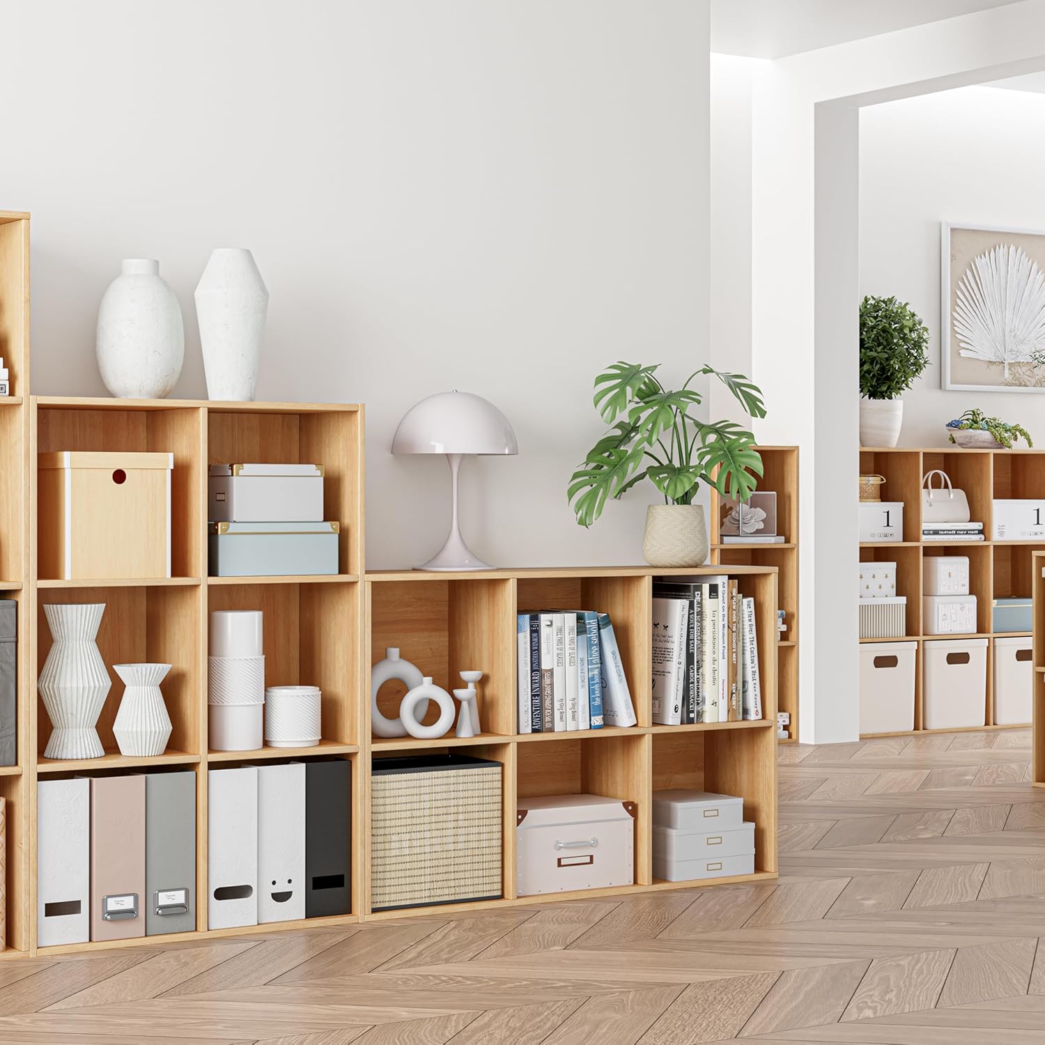 Wooden Cube Storage Organizer with Closed Back Panel, 11in Cube Shelf Opening, Bookshelf, Display Shelf,Closet Cabinet for Home and Office (Natural Oak, 6-Cube 35.98L*9.45W*24.09H)