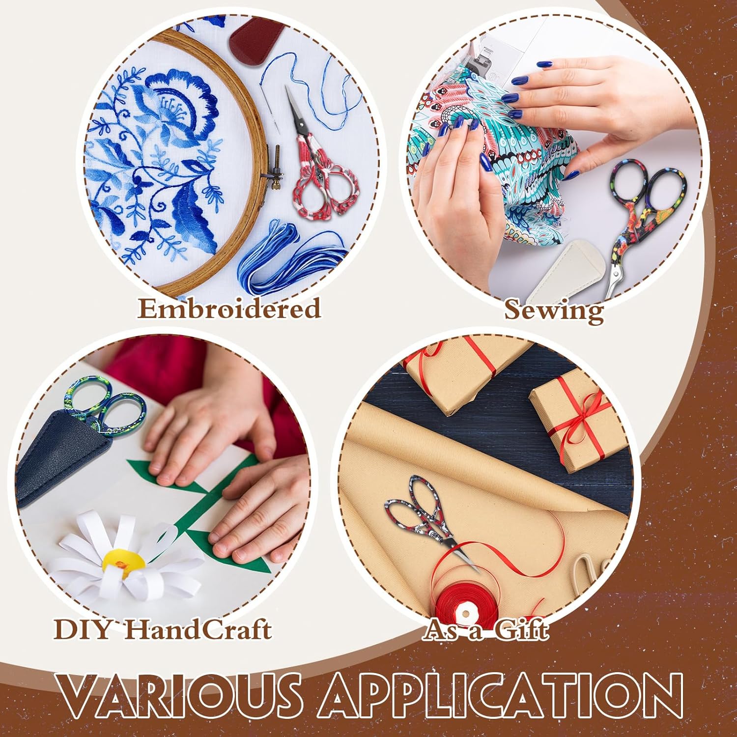 - Package Contents: you will obtain 4 different styles of stainless steel cutting scissors with 4 various colorful covers; The vintage scissors are enough for your daily application and handcraft tool