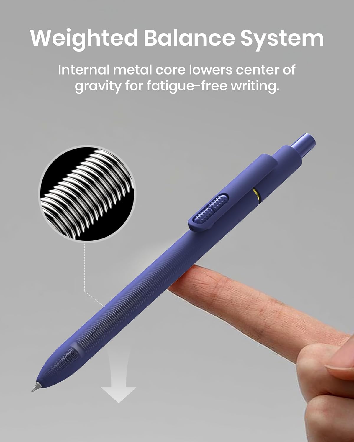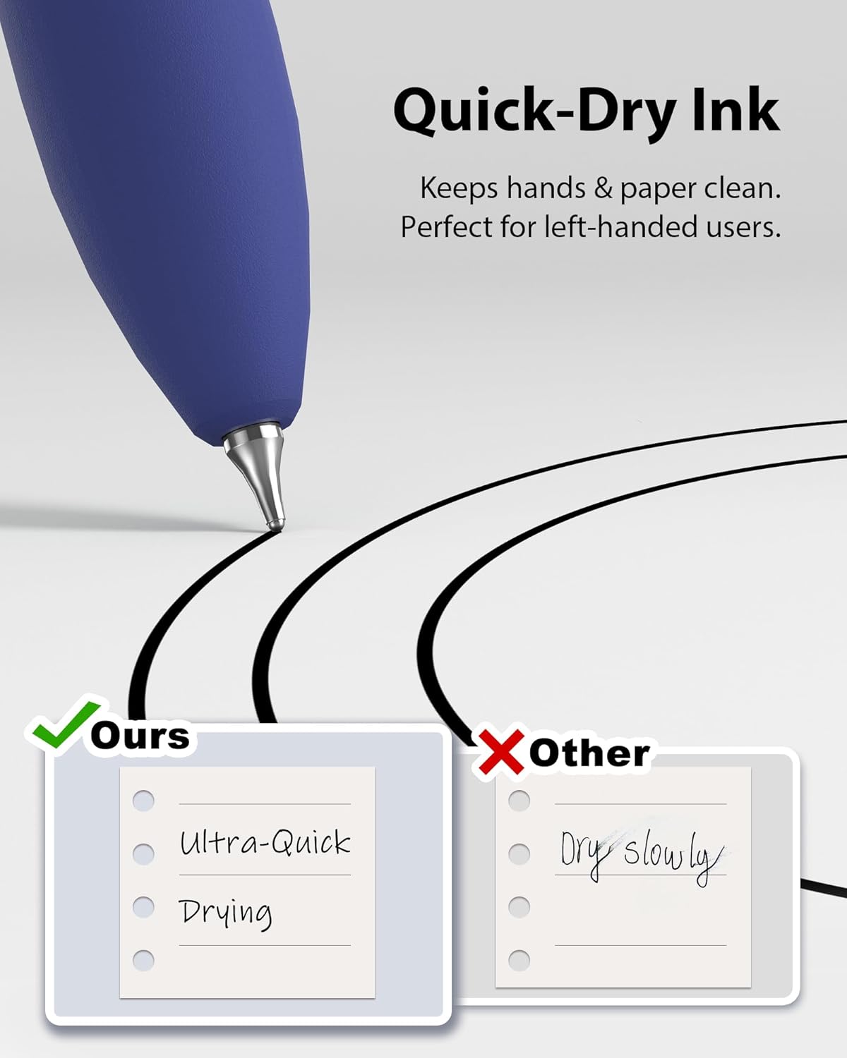 - Comfortable Non-Slip Grip:The ergonomic pen barrel has a soft rubberized coating for a comfortable, non-slip grip, so you won't get fatigued even after long hours of writing.