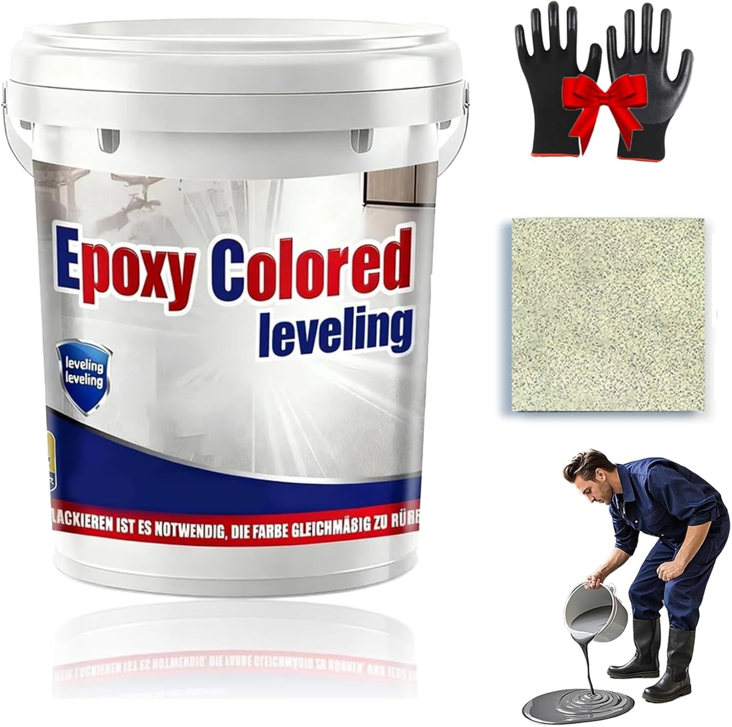 Epoxy Floor Paint, Epoxy Colored Sand Floor Paint, High-Gloss Marble Effect Self-Leveling Coating, Waterproof, Non-Slip, Ultra-Durable for Garage, Basement, Wood Floors (Beige,4.4 lb)