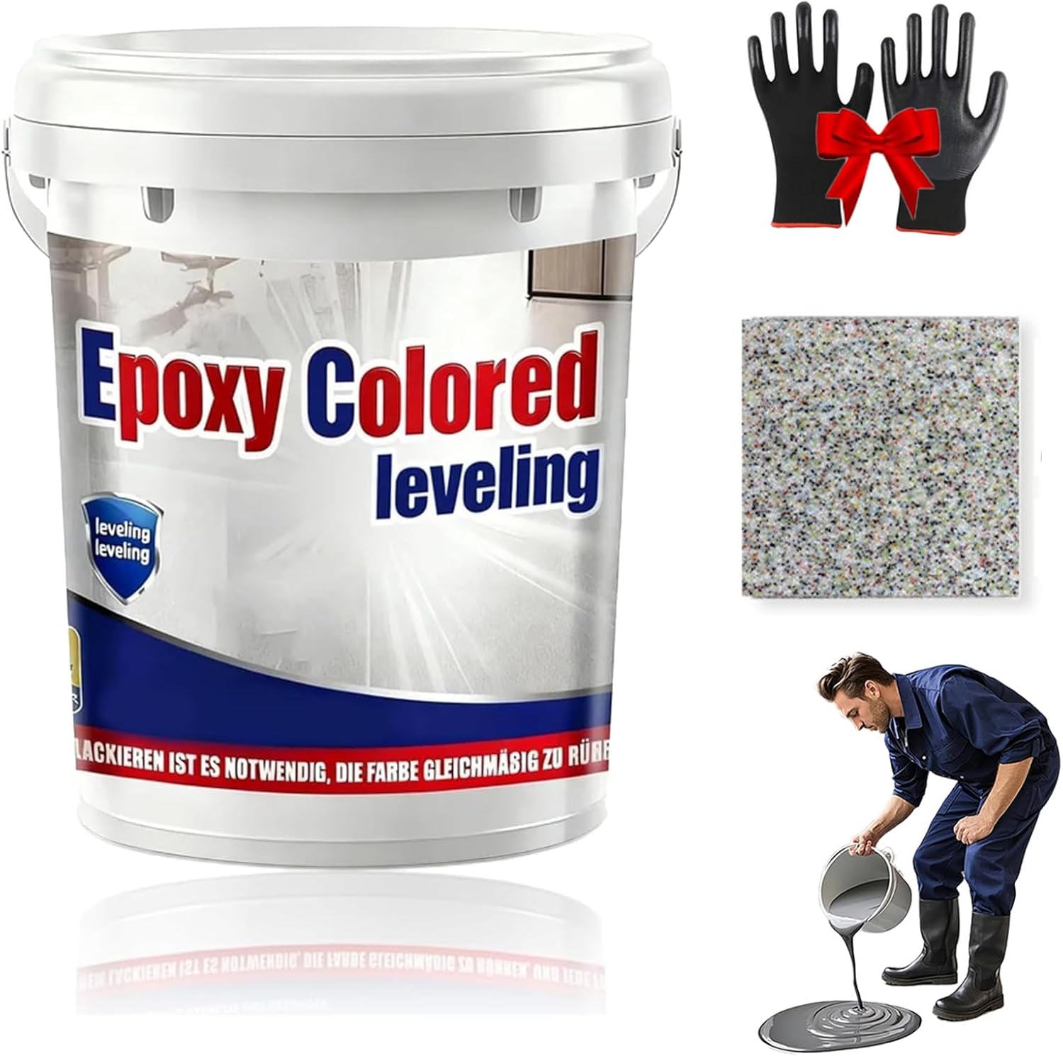 Epoxy Floor Paint, Epoxy Colored Sand Floor Paint, High-Gloss Marble Effect Self-Leveling Coating, Waterproof, Non-Slip, Ultra-Durable for Garage, Basement, Wood Floors (Colorful,4.4 lb)
