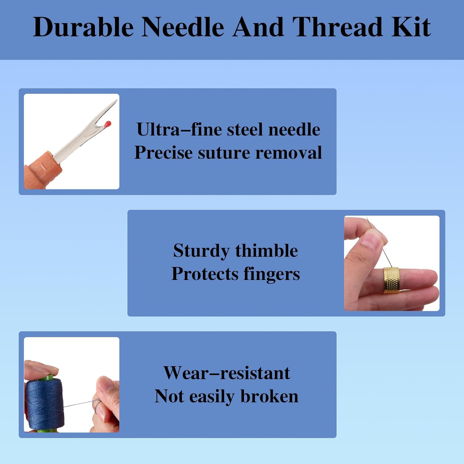 - Big Eye Steel Needle Set Material: Stainless steel hand sewing needles are crafted from stainless steel,hard, lustrous finish that glides effortlessly through various fabrics.Thread spools in steel sewing needles kit are made from high-density fiber,providing strong tensile strength and resisting breakage or fading from pulling,washing,or friction after sewing.The storage case for hand sewing kit is constructed from ABS,effectively protecting sewing accessories from crushing and impact