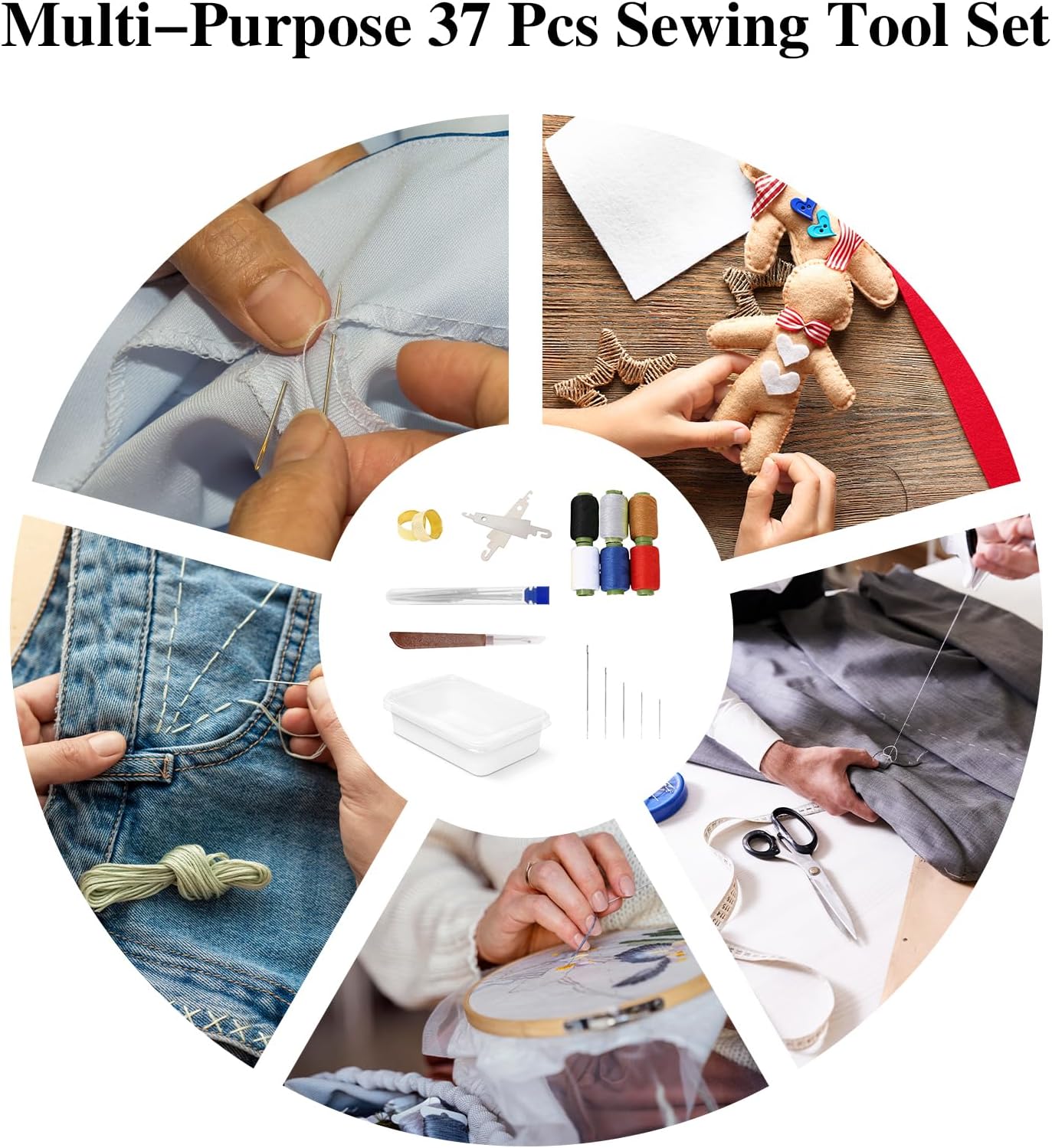 Big Eye Steel Sewing Needles Kit,37PCS Sewing Tool Set-Steel Needles,Thread Ripper,Thimble,Threaders and 6 Color Threads,Portable Hand Sewing Kit,for Beginners,Craft DIY Lovers,Daily Use (37 PCS Set)