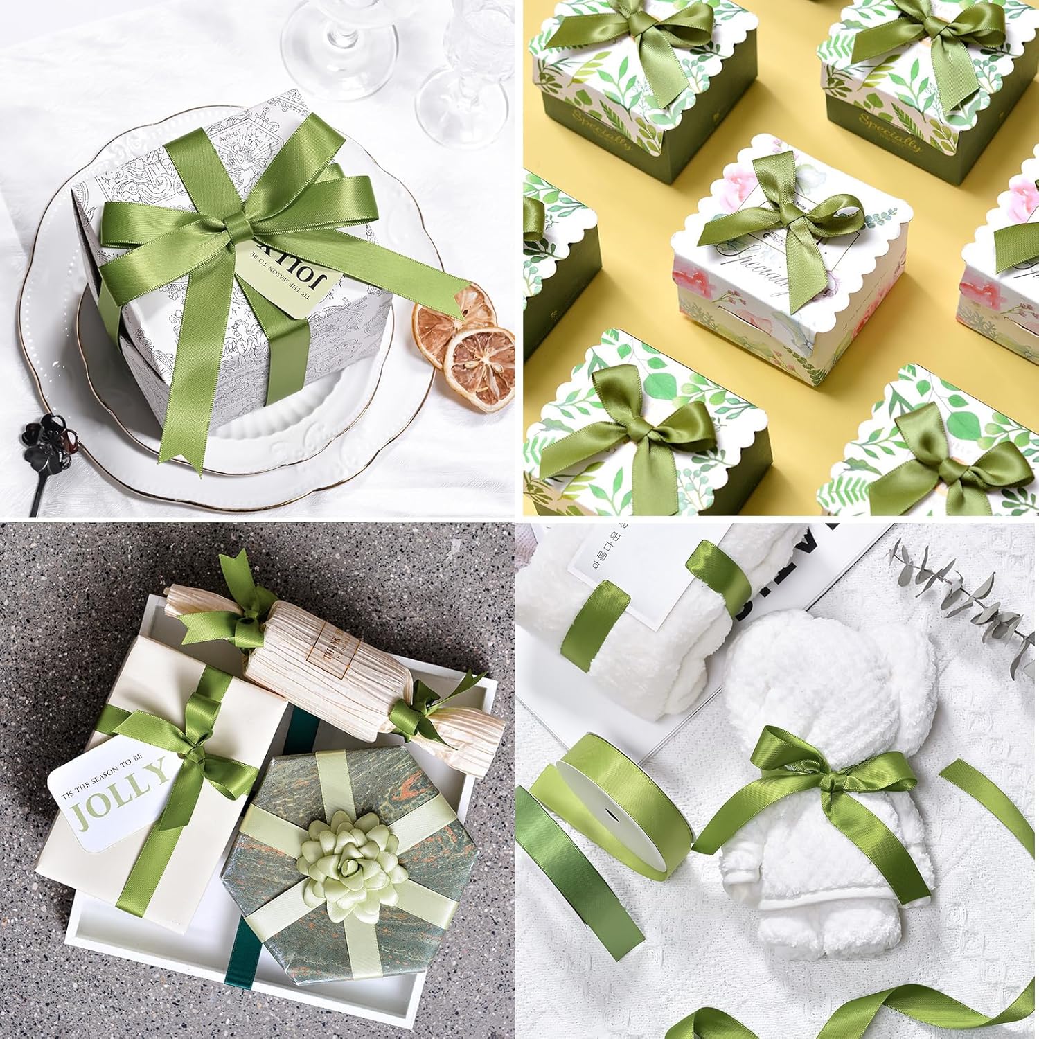 1" x 100 Yards Olive Green Polyester Satin Ribbon Single Faced Bulk Fabric Ribbons for Gift Wrapping, Crafting, Bows Making, Flower Bouquet, Wedding, Home Decor
