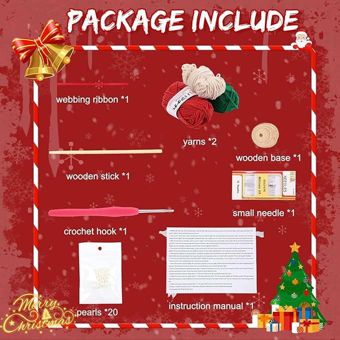 - 【Easy for Absolute Beginners】 No prior crochet experience needed! This DIY crochet Christmas tree kit comes with an illustrated instruction manual and video tutorials. Step-by-step demonstrations guide you through mastering basic stitches to complete your project. Anyone can successfully create this DIY crochet Christmas tree!