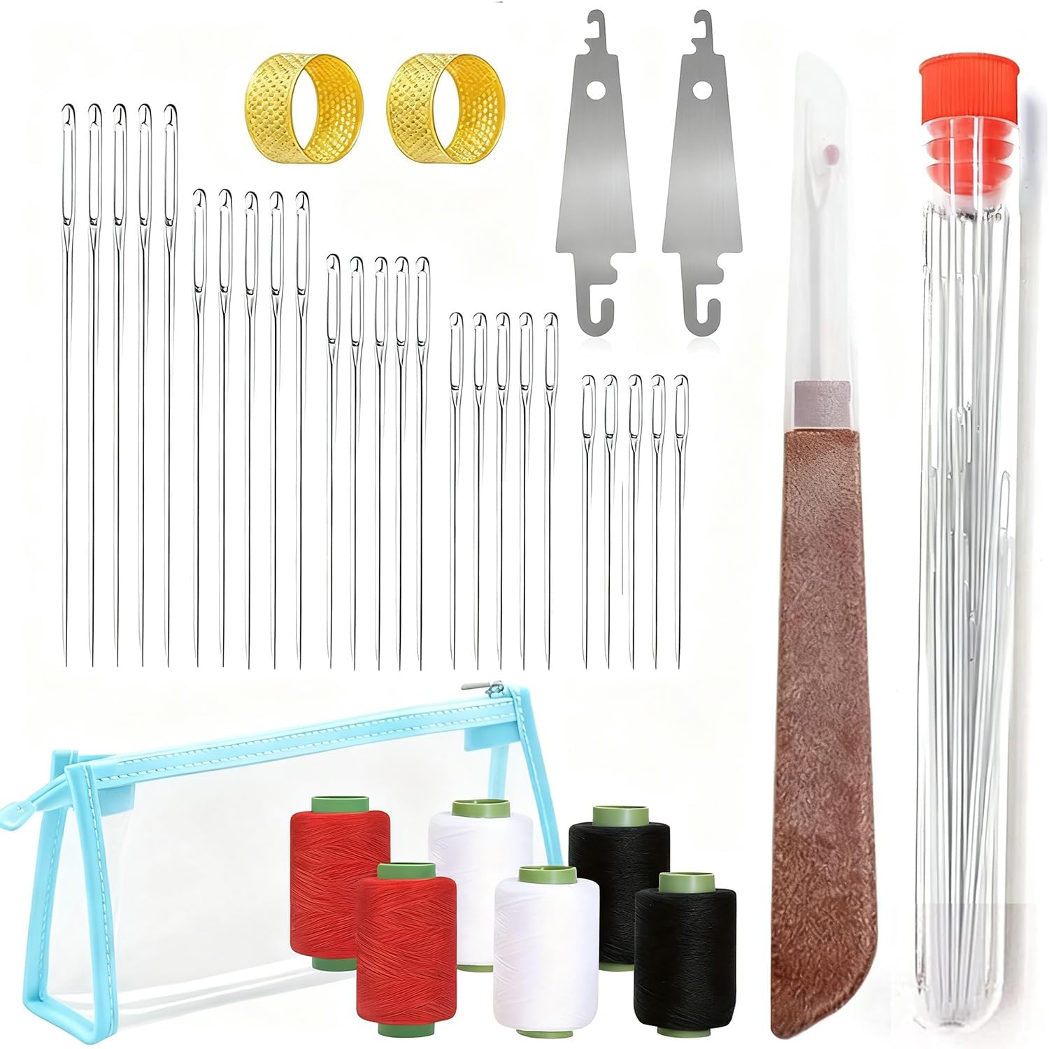 - 【Complete Steel Sewing Needles Kit】 This all-in-one sewing toolkit includes a variety of big eye steel sewing needles, threads, thimbles, and threaders. It is the ideal stainless steel needles for hand sewing, perfect for quick mending, DIY crafts, embroidery, and leather stitching