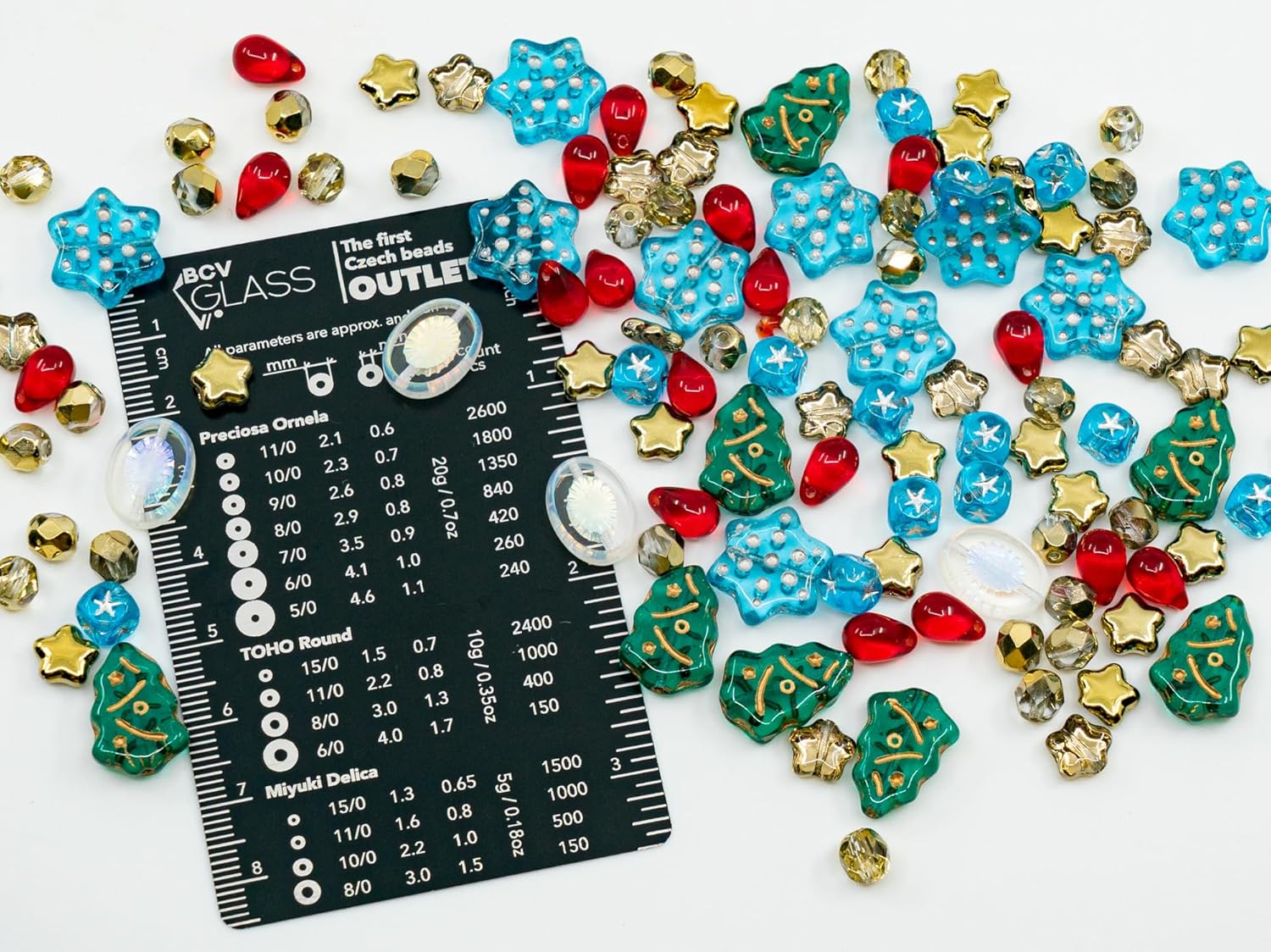 - CONTENTS: 2.1 oz of Czech glass beads featuring a festive winter mix including star shapes, teardrops, and cube beads in Christmas-themed colors (60 grams)